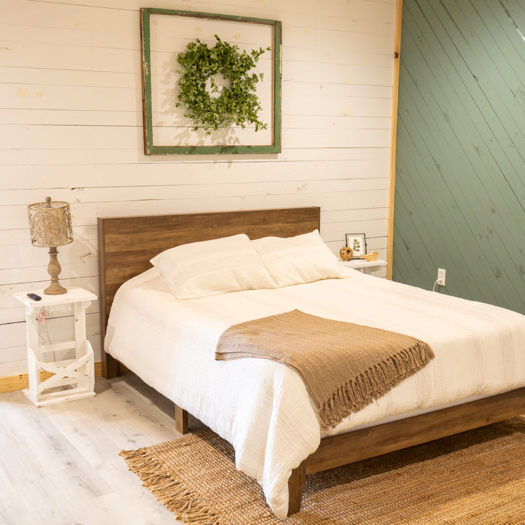 The Vintage View suite offers a charming farmhouse decor with a queen bed, perfect for two guests. Situated upstairs, this room provides a direct view of the safari and the opportunity to interact with the giraffes from your window. The suite includes an en suite bathroom, a mini fridge, Keurig, and plush linens, along with access to the petting zoo and safari drive-through.